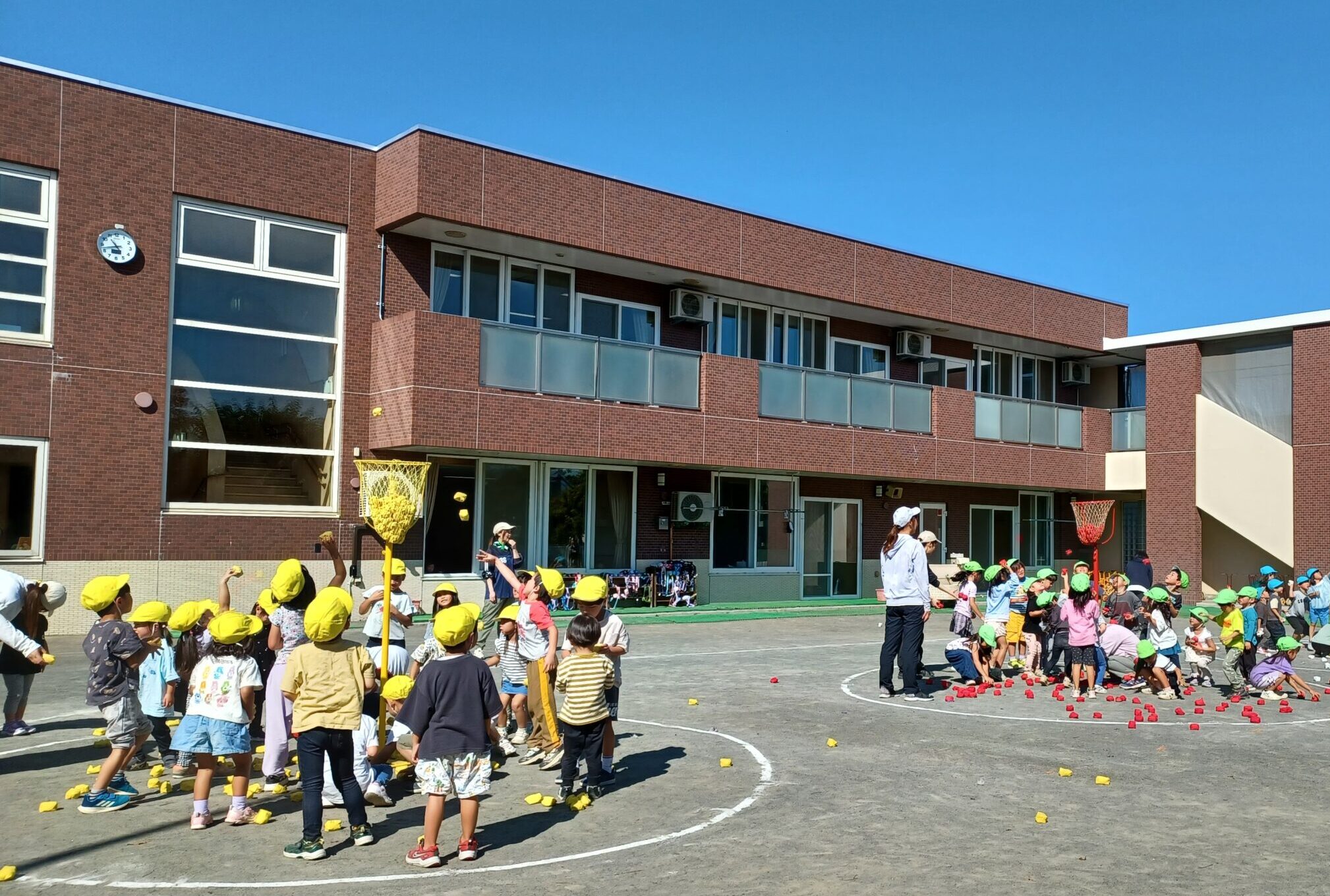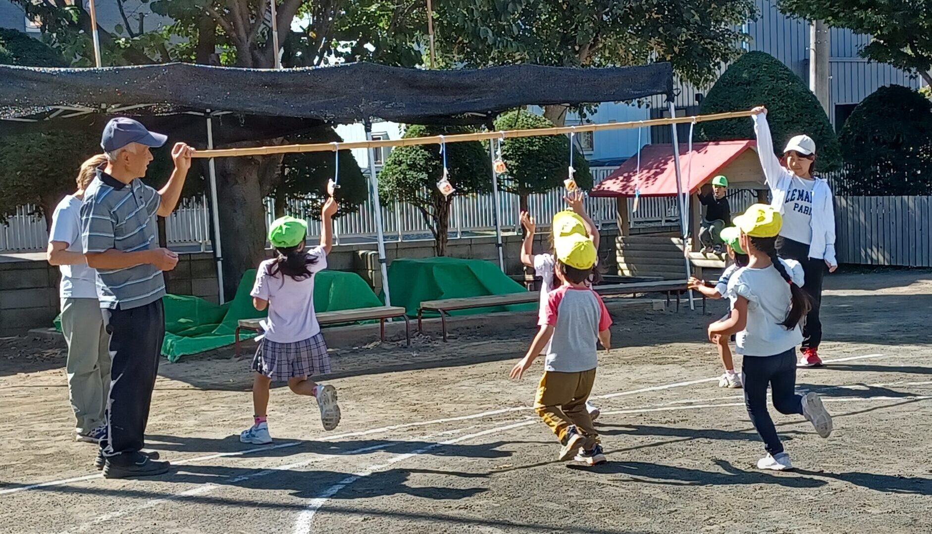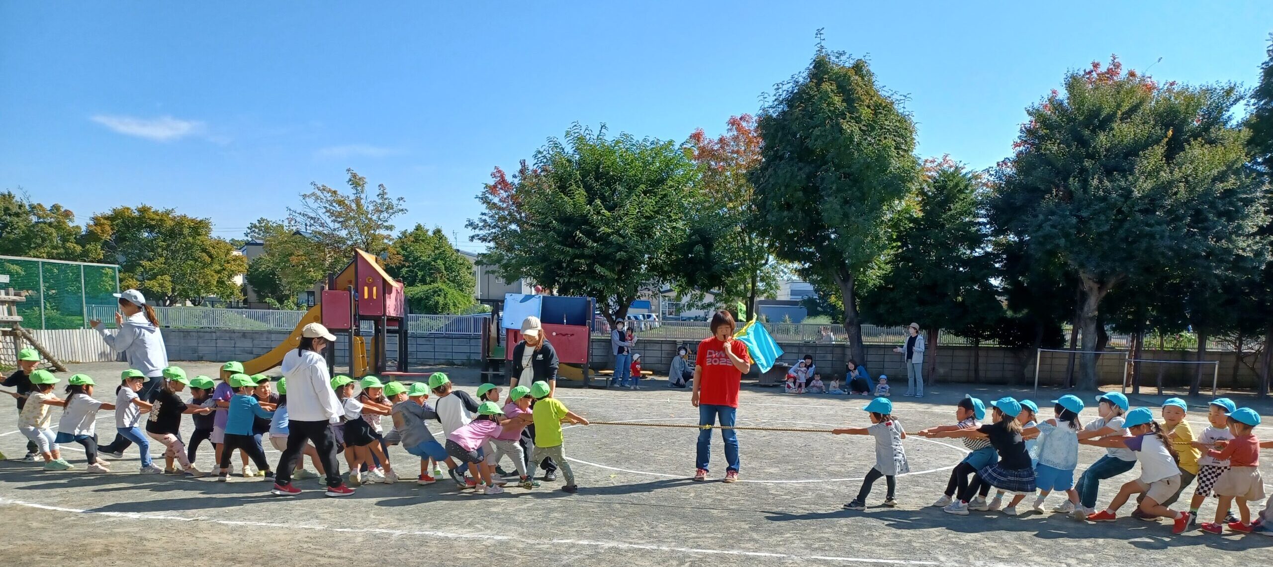 スポーツの秋!秋晴れの中、3才以上児で運動会ごっこを楽しみました。